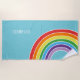 Entzückende personalisierte Mädchen-buntes Regenbogen-Badetuch. Roter, orange, gelber, grüner, blauer und lila hell farbiger Regenbogen auf einem hübschen hellblauen Himmelhintergrund. Personalisiert mit Namen im weißen Schriftart. www.SamAnnDesigns.com