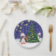 Füllen Sie diese Partyplatte mit guten Sachen an Ihrem Winter oder an WeihnachtsPartys. Dieser Spaßentwurf besteht aus Medien mischen für eine niedliche Szene im Freien. Meine Fotografie eines Schals und der Strickkappe, die handgemachte Walnuss Penguinverzierung tragen, wird Szene mit digitale Kunst eine schneebedeckte, starry Nacht und eines Weihnachtsbaums als der Hintergrund gemischt.