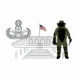 Eod-Meister mit EOD-Denkmal und Bomben-Anzug