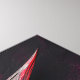 Der fossilen Kopf eines Dinosauriers taucht auf einer Kulisse aus Kohlegranit auf. Bezaubern Sie mit abstrakten Schwarz- und Rotweinfarben, verwoben mit strukturierten Holzkohleelementen, in einem dunklen Meisterwerk, das sich durch die Jahrhunderte zieht.