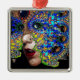 Farbenfrohe, elegante und künstlerische Fraktal-Maske mit lebhaften Perlen in Blau, lila, Schwarz, Gelb, Rot.Rosa, Fuchsia und hellen 3D Edelsteinen.