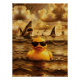 shark art, rubber duck painting, funny ocean wall art, surreal seascape, dramatic shark attack, humorous nautical decor, yellow duck illustration, stormy sea artwork, fantasy marine scene, whimsical wall art, brave little duck, coastal decor, shark fins, oil painting print, bold statement art