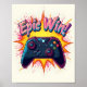 Epic Win Game Controller - Ein schwarzer Gaming-Controller wird in einer lebendigen Comic-Book-Style-Abbildung dargestellt. Der Regler wird gegen eine hellgelbe Explosion mit rosa und weißen Punkten positioniert und schafft so ein energetisches und energetisches Gefühl. Die Worte "Epic Win!" werden in fett, bunten Buchstaben über dem Controller geschrieben, was die feierliche Stimmung verstärkt.