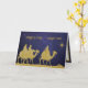 Die Drei Wisamen, die eine wunderschöne Silhouette aus Gold der Magi haben, sind auf ihren Kamelen unterwegs und folgen dem Stern um Jesus zu finden. Liebliche Karte für das Fest der Epiphany! Der 6. Januar wird als Kirchenfest zur Erinnerung an die Ankunft der Magi als erste Manifestation Christi an die Andern beobachtet. Legen Sie Ihr Lieblings-Foto in die Karte ein. Alle Texte und Schriftart können verändert werden.