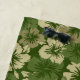 Olivgrünes und kakifarbiges Colorway. Diese übergroße Hand übertragenen Hibiskus-Blumen sind von den Blumen erinnernd, die in den Vintagen aloha Shirts in den Vierzigern und in den Fünfziger Jahren benutzt werden. Diese Entwürfe kommen in einige colorways.