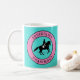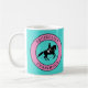 Ein tolles Geschenk für den Pferdeliebhaber. Equiholics Einstimmiges Logo mit Pferd und Reiter in einem rosa Kreis auf türkisfarbenem Hintergrund mit Text auf der Rückseite. Bilder, Texte und Hintergrundfarben sind anpassbar. Fahren Sie alleine? Fahrt vor dem Frühstück? Lest, wie viel du fährst? Dann können Sie ein EQUIHOLIC sein! Es gibt kein Heilmittel, aber eine Gruppentherapie wird dringend empfohlen. Machen Sie es einzigartig und fahren Sie mit Ihren Freunden!