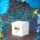 Er fragte, sie sagte ja Foto verlobt blau grün Geschenkschachtel