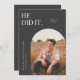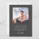 Moderne Abschluss-Anzeigenkarte mit einem kohlegrauen Bogen für Ihr Foto. Im Text steht: "ER HAT ES GETAN."