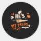 Er ist mein Trick Funny Skeleton Halloween Matchin Runder Aufkleber