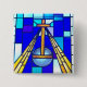 Ein Knopf mit einem Design aus einem der Glasfenster der Baptistkirche Greater Abyssinia in Cleveland, Ohio