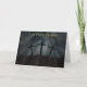 Drei Kreuze auf einem Hügel mit Lichteffekten aus dem Himmel mit dem Text HAS RISEN oben. Osterkarte