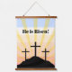 Feiern Sie die Auferstehung mit rustikaler Eleganz: "Er ist verschwiegen!" Holztäfeltes Tapestry Declare die fröhliche Botschaft von Ostern mit unserem markanten "Er ist Risen!" Tapisserie aus Holz. Dieses einzigartige Stück zeichnet sich durch einen rückwärts inspiriert, gestreiften Hintergrund aus, der eine Touch Vintagen Charmes verleiht, wunderschön kontrastiert durch eine mächtige Silhouette der drei Kreuze auf Calvary im Vordergrund. Die lebhaften Farben und die knusprigen Linien des Designs werden auf weichem, leichtgewichtiges Polyester gedruckt, wodurch eine visuell wirkungsvolle Anzeige an jeder Wand gewährleistet ist. Die ergreifende Silhouette der Kreuze dient als mächtige Erinnerung des Opfers, während der kühne Text "Er ist Risen!" den triumphierenden Sieg über den Tod verkündet. Passen Sie den Text nach Wunsch an! Es ist ein großartiges Geschenk für die Kirche, die Formation, Ostern, den Muttertag, den Vatertag, Weihnachten und andere besondere Anlass.