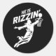 Er ist Rizzin lustigen Jesus Bysketbyll Meme Retro Runder Aufkleber