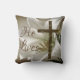 Osterkissen. Er lebt mit bedrücktem Cross Overlay weißer Osterlilie. Christliches Quotes-Geschäft.