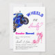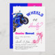 Elegant Was Baby wird Heels oder Räder Thema Geschlecht Reveal Einladung mit Aquarellfarbe rosa Schuhe mit Bogen und blauen Motorrad. Entsprechende Produkte finden Sie in der Sammlung.