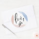 Er oder sie? Gender Reveal Party Dekorationsticker mit abstrakten rosa und blauen Formen und moderne Kalligraphie. Besuchen Sie den Shop, um die ganze Sammlung zu sehen!