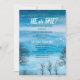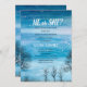 Schnee in der Liebe, Winterwunderland, Blau, Weiß, Schneeflocken, Bäume Winter Geschlecht offenbaren Einladung. Elegante, schöne Babydusche. Handgemalte Aquarellmalerei des Waldes allein. Personalisieren Sie es mit Ihren Daten.