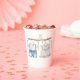Er oder sie zeigt die Gender-Bekleidung Pappbecher
