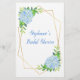 Dieses Brautparty ist ein "He Said", "She Said", raten Sie, wer es gesagt hat. Es zeichnet sich durch Aquarellblau Hydrangea-Blume, Blattwerk und Imitate goldene geometrische Design. Personalisieren Sie die Rückseite der Karte mit dem Namen der Braut. Matching-Produkte verfügbar.