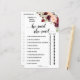 Er sagte, sie sagte, Englisch und Spanisch Version Spiel enthalten (vorne und hinten). Fügen Sie Bride zu Name in die Vorlage für Englisch und Spanisch. Für weitere Anpassungen (andere Formulierungen, Schriftart, Stil des Schriftartes), klicken Sie auf Personalisieren, scrollen Sie nach unten und klicken Sie auf den Link "Klicken Sie auf, um weiter anzupassen". WIE MAN SPIELEN KANN: Die Gäste raten, ob die Braut oder der Bräutigam gesagt hat, die Phrasen auf der rechten Seite der Illustrationen (Braut oder Bräutigam) ihre Antwort überprüfen. Die Person mit den korrektesten Antworten gewinnt