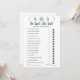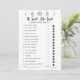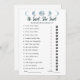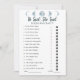 Fügen Sie Ihrem Brautparty etwas Himmelsspass hinzu mit unserem Minimalistischen Mond Phases Celestial Blue Collection Spiel: "Er sagte, sie sagte." Dieses Spiel ist ein großartiger Weg, um die Gäste zum Lachen und Interagieren zu bringen, während sie versuchen zu erraten, wer was gesagt hat, die Braut oder den Bräutigam. Das Design ist schlicht und puristisch, mit einer weißen Kulisse, die das himmlische Thema unterstreicht. Oben auf der Spielkarte werden die fünf Mondphasen in einer schönen hellblauen Farbe angezeigt, die dem Design eine himmlische Touch verleiht. Das Spiel enthält 15 Fragen, jede mit einer Aussage, die die Braut oder der Bräutigam gemacht haben könnte. Die Gäste müssen entweder das Hochzeitskleid Ikone umkreisen, wenn sie denken, die Braut sagte es oder die Tuxedo-Jacke Ikone, wenn sie denken, der Bräutigam sagte es. Es ist ein lustiger und leichter Weg, das Wissen der Gäste über das Paar zu testen und zu sehen, wie gut sie Braut und Bräutigam kennen. Das minimalistische Design dieser Spielkarte macht es einfach, sich mit Ihrem Brautparty-Dekor und anderen Himmelsthemen abzustimmen. Egal ob Sie ein traditionelles Brautparty oder eine moderne Feier veranstalten, dieses Spiel wird Ihr Thema wunderbar ergänzen. Bereiten Sie sich mit unserem Minimalistischen Brautparty "Moon Phases Celestial Blue Collection" auf ein Lächeln und einen freundlichen Wettbewerb vor: "Er sagte, sie sagte."