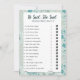 "He Said, She Said", das Must-have-Brautparty-Spiel, das Freude, Lachen und freundliche Konkurrenz für Ihre Feier bringen wird. Dieses personalisierte Spiel ist darauf ausgerichtet, die Braut- und Bräutigkeits-Kenntnisse Ihrer Gäste zu testen und so für alle Beteiligten ein unvergessliches Erlebnis zu schaffen. "He Said, She Said" enthält eine Liste von individuell anpassbaren Fragen, die Ihre Gäste herausfordern werden, zu erraten, wer was gesagt hat. Bei jeder Frage müssen die Teilnehmer entscheiden, ob die Aussage von der Braut oder vom Bräutigam gemacht wurde. Um ihre Wahl zu zeigen, umkreisen die Gäste das elegante Hochzeitskleid, das die Braut symbolisiert, oder das tanzende Tuxedo, das den Bräutigam darstellt. Es ist ein interaktives Spiel, das lebendige Gespräche und freundliche Debatten unter Freunden und Familie fördert. Diese Version von "He Said, She Said" zeigt einen weißen Hintergrund, der mit einem zauberhaften Rahmen von grünen botanischen Blätter geschmückt ist. Das Design fügt Ihrem Brautparty eine Touch natürlicher Eleganz hinzu, die die fröhliche Atmosphäre des Ortes perfekt ergänzt. Zusätzlich wird auf der Rückseite des Spiels die selbe reizvolle Grenze für botanische Blätter angezeigt, die für Ihre Gäste ein zusammenhängendes und optisch ansprechendes Erlebnis schafft. Die Spielkarten enthalten auch einen dedizierten Platz am unteren Rand, wo die Gäste ihre Namen schreiben und die Anzahl der richtigen Antworten behalten werden können. Dies fördert nicht nur den freundlichen Wettbewerb, sondern ermöglicht auch die Identifizierung des ultimativen Meisters "He Said, She Said" am Ende des Spiels, was dem Event eine zusätzliche Spannung und Vorfreude verleiht. Während Sie die personalisierten Fragen erforschen, bereiten Sie sich darauf vor, lustige Anekdoten, herzerwärmende Momente und Überraschungen zu enträtseln, die die einzigartige Dynamik und gemeinsame Erfahrungen des Paares widerspiegeln. "He Said, She Said" unterhält nicht nur, sondern stärkt auch die Bindung zwischen Gästen und dem bald zu erwartenden Duo und schafft dauerhafte Erinnerungen, die für die nächsten Jahre geschätzt werden. Verwandeln Sie Ihr Brautparty in eine unvergessliche Feier voller Lachen und Verbindung. Mit "He Said, She Said" schaffen Sie eine lustige und komische Atmosphäre, während Sie die Liebe zwischen Braut und Bräutigam feiern. Genießen Sie die Schönheit der grünen botanischen Blätter und ließ Sie die Begeisterung, wenn Sie ein unvergessliches Brautparty erleben!