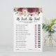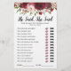 Machen Sie Ihr Brautparty zu erinnern mit diesem eleganten, lustigen "er sagte, sie sagte" Brautparty-Spiel! Mit prächtigen Bordeaux- und Blütenfarben und Textvorlagen, die leicht personalisiert werden können.