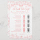Fügen Sie Ihrem Brautparty eine Touch Peitsche mit unserem Brautparty "Whimsical Peach Pink Garden Chinoiserie He Said, She Said"! Dieses Spiel mit einem zauberhaften pfirsichrosa Gartendesign mit Chinoiserie-Elementen lädt die Gäste ein, zu erraten, wer was gesagt hat. Passen Sie jetzt an, um ein angenehmes und eindrucksvolles Erlebnis für Ihre Feier zu schaffen!