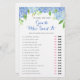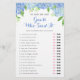 Dieses Brautparty ist ein "He Said", "She Said", raten Sie, wer es gesagt hat. Es zeichnet sich durch ein Aquarellblau Hydrangea Blumendesign aus. Sie können den Text mit Ihren eigenen Fragen personalisieren. Matching Brautparty Party zur Verfügung.