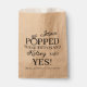 Er stellte die Fragegebeutel für Ihre Popcorn-Gefälligkeiten auf Ihrer Verlobungsfeier oder Ihrem Brautparty, die Sie personalisieren können, indem Sie den Bräutigam-to-be-Namen und den Namen der Braut-zu-sein für eine individuellere Touch schreiben. Das O in Popped wird durch einen Ring mit Diamant-Verlobung ersetzt.