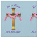 Er wird gestiegen. Ein Goldkreuz, das mit rosa Rosen und Ihrer Wahl der Hintergrundfarben drapiert wird, ist der perfekte Entwurf für Ostern und das täglich. Er wird gestiegen. Er wird tatsächlich gestiegen