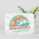 Super Retro-coole Erbsen auf der Erde Weihnachtskarte mit Peapod, Regenbogen und dekorativen Strahlen Hintergrund für Lebensmittelverkäufer, Koch oder Catering Biz, und andere Kochen oder kulinarische Profis.
