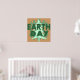 Bäume gegen ein verziertes Design und die Worte "Earth Day" sorgen für ein festliches und dennoch einfaches Design, um unseren Planeten zu feiern, das Bewusstsein für den Klimawandel, die Erderwärmung und die Nachhaltigkeit zu schärfen.