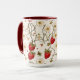 Diese Kombi-Tasse zeigt ein charmantes botanisches Erdbeerdesign, illustriert mit reichen roten Beeren, zarten weißen Blüten und weichen grünen Blättern, die mit eleganten Ranken verwoben sind. Das Kunstwerk umgibt die Tasse in einer warmen, einladenden Komposition, die sich frisch, nostalgisch und schön detailliert anfühlt. Die kontrastierende Innen- und Griff-Farbe verleiht der Tasse eine moderne Note, unterstreicht die natürlichen Töne des Designs und gibt der Tasse ein stilvolles, poliertes Aussehen. Perfekt für morgendlichen Kaffee, nachmittäglichen Tee oder gemütliche Küchenmomente, bringt diese Tasse einen süßen, naturinspirierten Akzent in den Alltag.