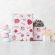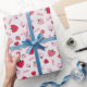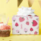 Dieses hübsche Papier mit roten und rosafarbenen Erdbeeren als Herz der Liebe und Xoxo-Text auf weißem Hintergrund.