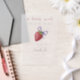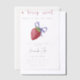 Babydusche Einladungskarte mit Aquarellbild von Erdbeeren mit lila Bug. Im Text steht: "Ein beerisches süßes Baby ist unterwegs."