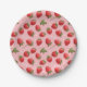 Fun Erdbeeren Muster Party Papier Teller. Das Design ist mit einem stylischen Erdbeermuster, roten Beeren auf einem rosa Hintergrund ausgestattet.