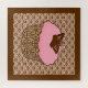 Puzzle eines Erdbeeren Rosa Mattierter Kuchen mit einem Schokoladenschmetterling in einem dekorativen, schokoladenbraunen Damast gemusterten Kuchenwickler auf braunem, braunem und korallenrosa chinesischem Hintergrund