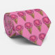 Necktie zeigt eine originelle Marker-Abbildung einer köstlichen Kugel aus rosa Erdbeereis in einem Waffelkonus auf rosa Untergrund.