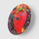 Wall Uhr mit Bild einer roten Erdbeere auf einer Mischung aus anderen Beeren liegen. Anpassbar.