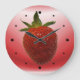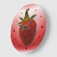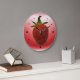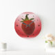 Für die Küche. Eine große, lustige rote, süße Erdbeere. Präsentiert über einen Designerhintergrund von weichen Erdbeeren Shortcake Farben. TShirtErdbeere, BGWarpRed, Clock7a