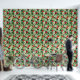 Wasserfarbene Erdbeeren und weiße Blüten mit grünen Blätter und Weinreben.