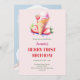 Erdbeeren und Eis für eine Berry First Birthday Party. Personalisieren Sie Ihre Party-Daten und fügen Sie sie hinzu. Heller rosa Hintergrund. Zurück: Fügen Sie ein Foto hinzu.