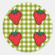 Erdbeeren auf Green Gingham Runder Aufkleber