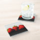 Erdbeeren auf weißer Seite über schwarzer Küste Glasuntersetzer