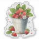 Konstruieren Sie den Aufkleber mit einer sommerlichen Grafik eines Haufen Erdbeeren, die in einem Eimer überfließen.