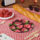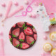 Erdbeeren und Scheiben werden mit Aquarellen bemalt und das Muster ist in Illustrator gefertigt.