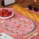 Teller mit handgezogenen Erdbeeren Art Muster Rosa und Weißer Erdbeeren Design