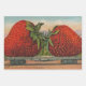 Antique Funny Giant Strawberry Train - Diese Erdbeerauswertung basiert auf einer Postkarte aus dem Jahr 1911, die zwei gigantische Erdbeeren zeigt, die mit dem Zug quer durch das Land transportiert werden. Die Erdbeeren sind größer als ein Haus! Es handelt sich um riesige Erdbeeren, die für Riesenmenschen gedacht sind, die irgendwo in den Fernen des Erdbeerkönigreiches leben! Die Erdbeeren sind etwa so groß wie ein Haus, helle rote Beeren, und sitzen auf einem flachliegenden Zugbett und rollen die Bahngleise hinunter.