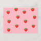 Erdbeeren rosa Postkarte. Die individuell anpassbare Postkarte hat niedliche rote Erdbeeren auf einem hellrosa Hintergrund.